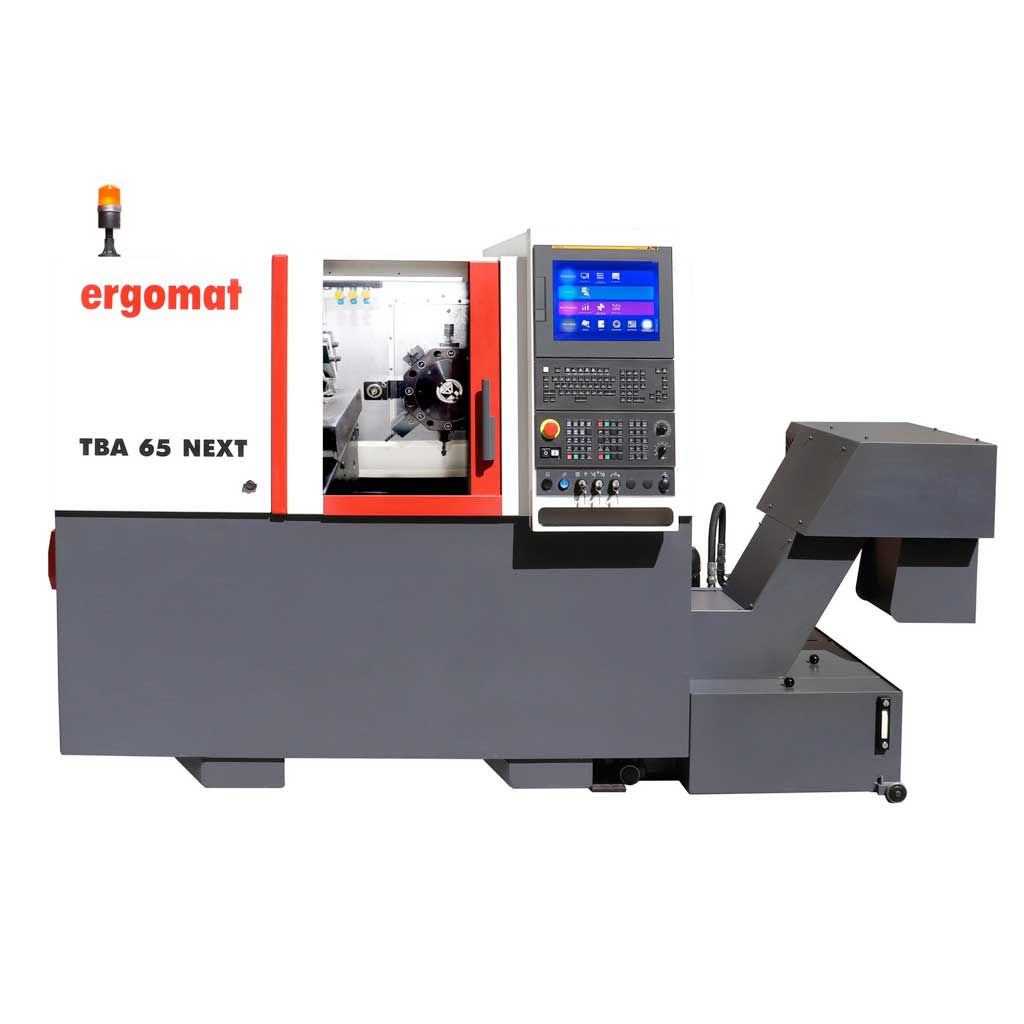 Representando a quinta geração da família de tornos de carros múltiplos da ERGOMAT, o TBA 45/65 NEXT traz a fusão ideal entre uma máquina CNC clássica e um torno de carros múltiplos de altíssima produtividade.